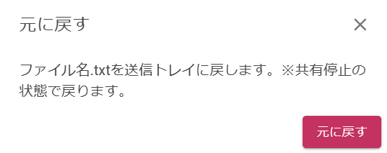 | ダウンロード状況 | ダウンロード状況がアイコンで表示されます。 複数の宛先に送った場合、送信先のうち誰か一人でもダウンロードした場合、ダウンロード済みに変化します。 送信先別のダウンロード状況はファイル履歴を確認してください。 FAQ:宛先の中に未ダウンロードの人がいるにも関わらず、ダウンロード状況がダウンロード済になっている |