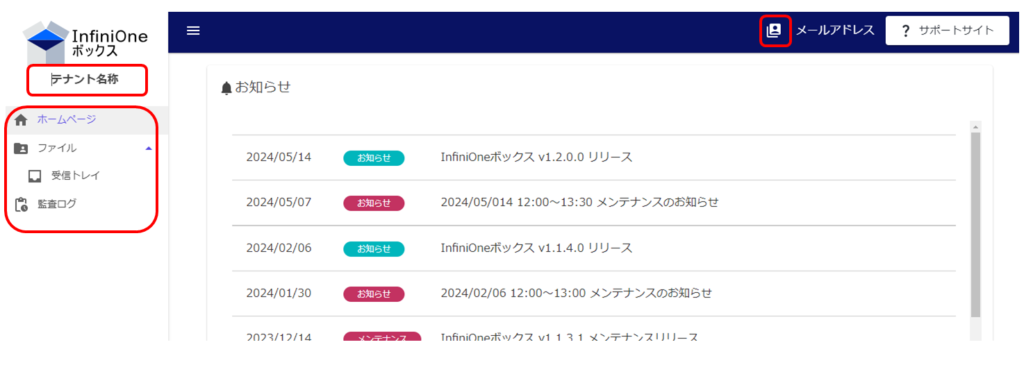ログイン完了後に表示される画面です。