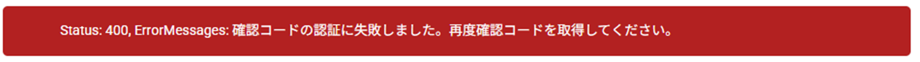 「Status: 400, ErrorMessages:~~~」とステータスコードとエラー内容が表示されます。