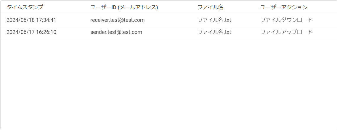 メールアドレス違いなどで意図しない宛先にファイル送信した場合も、メールアドレスが存在すれば通知メールは送信成功になりますので、宛先入力は間違いの無いよう確認をお願いします。