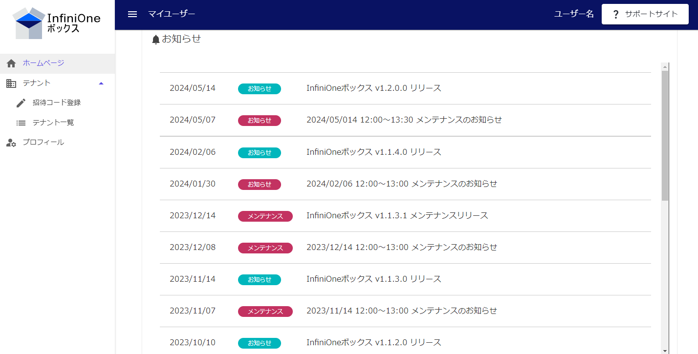 InfiniOneボックスでは、ファイルを送信する企業をテナントという単位で管理しています。
