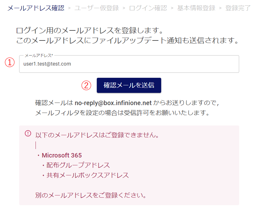 ②メールアドレス確認