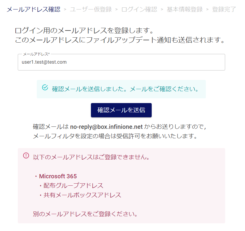 - 確認メールの再送するには1分以上間隔を空ける必要があります。