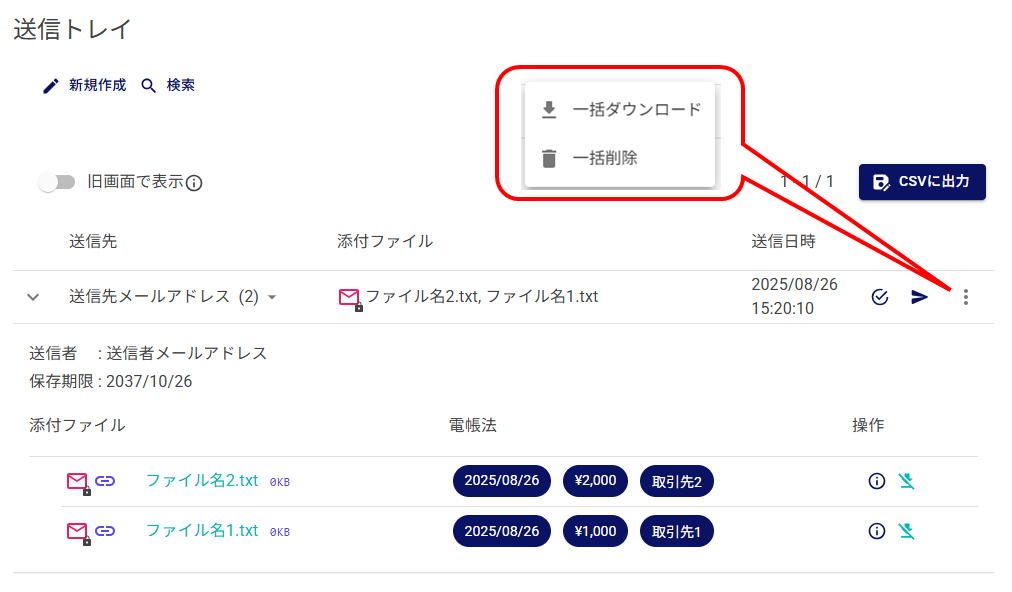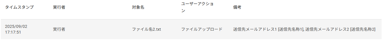 ファイルアップロード時の送信先を備考に表示