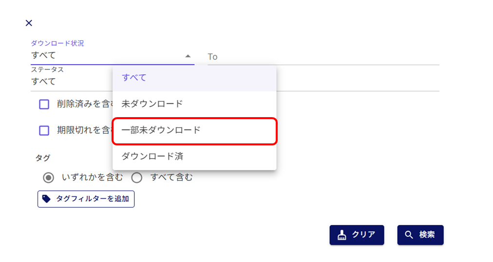 ダウンロードステータスの絞り込みで一部未ダウンロードを検索可能に